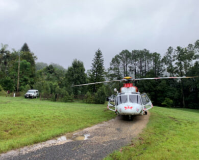 Tasked to reports of a person injured in a landslide at Wilsons Creek. A man with serious injuries was treated on the scene with Emergency Services and he was flown to Gold Coast University Hospital.